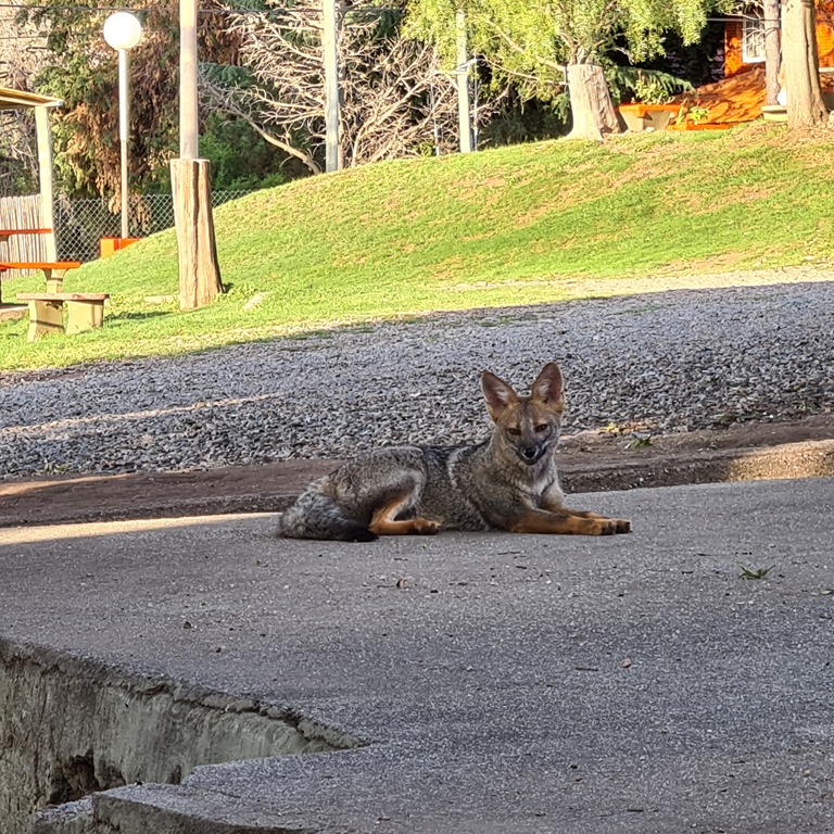 Mit dem Stellplatz in Nono haben wir wieder wirklich Glück. Super ruhig gelegen, zwischen Wiesen und Fluss, haben wir noch Zeit die letzten Sonnenstrahle zu geniessen. Es geht am nächsten Morgen auch wieder langsam weiter. Wühlmaus ist abgeladen. Ziel ist Merlo, dort treffen wir uns fast zeitgleich auf dem Campingplatz wieder. Dieter hat die ausgebaute Strecke mit Mogl genommen und ich die durch die kleinen Ortschaften. Wir haben noch eine kleine Wanderung in das Natur Reservat unternommen, uns eine Parrilla für den Asado organisiert und uns eingerichtet. Beim Essen abends bekommen wir wieder Besuch, diesmal mit etwas plüschigerer Oberfläche – ein Zorro! Wie schön!!