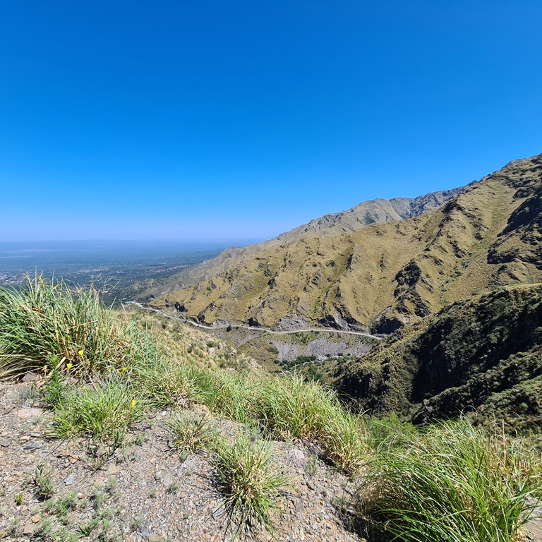 Später haben wir und noch auf den Weg in Richtung Mina Clavero aufgemacht. In Mina Clavero wollten auf gar keinen Fall den Zwischenstopp einlegen, das fanden wir das letzte Mal schon so lala. Die Sonne war wieder da und wir schrauben uns über die Bergkette der Sierra Cucumbre. Im Sonnenlicht begeistern uns die Aussichten, die sich nach jeder Kurve wieder verändern, Wir haben ja Zeit – Mogl zieht gemütlich mit nicht relevanter Geschwindigkeit über den Kamm. ![]()