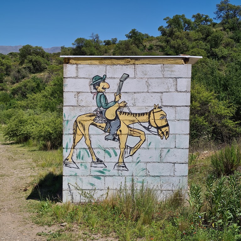 Die Stadt Merlo hat sich in den letzten Jahren sehr verändert. Ich würde sagen kommerzialisiert, stärker auf Tourismus ausgelegt. Aber hält sich immer noch im Rahmen. Ich mir noch einen Ausritt organisiert durch die Sierra von Merlo und am nächsten Tag noch die Wühlmaus geschnappt und bin die 1000 Höhenmeter auf den Cerro de las Ovejas raufgefahren. Ein nettes Kurvenmeer mit fantastischen Aussichten über die Ebene von Merlo und San Lius. Einen Condor habe ich gesehen – er hat einen etwas größeren Schatten über mich während der Fahrt geworfen. Möglicherweise wegen der Wühlmaus? Uns umgibt die Sierra de los Comechingones, mit ihrer scheinbar weichen grünen “Oberfläche”. Wenn sich allerdings zu Fuß dadurch begibt…. Alles ziemlich stachelige Sträucher.