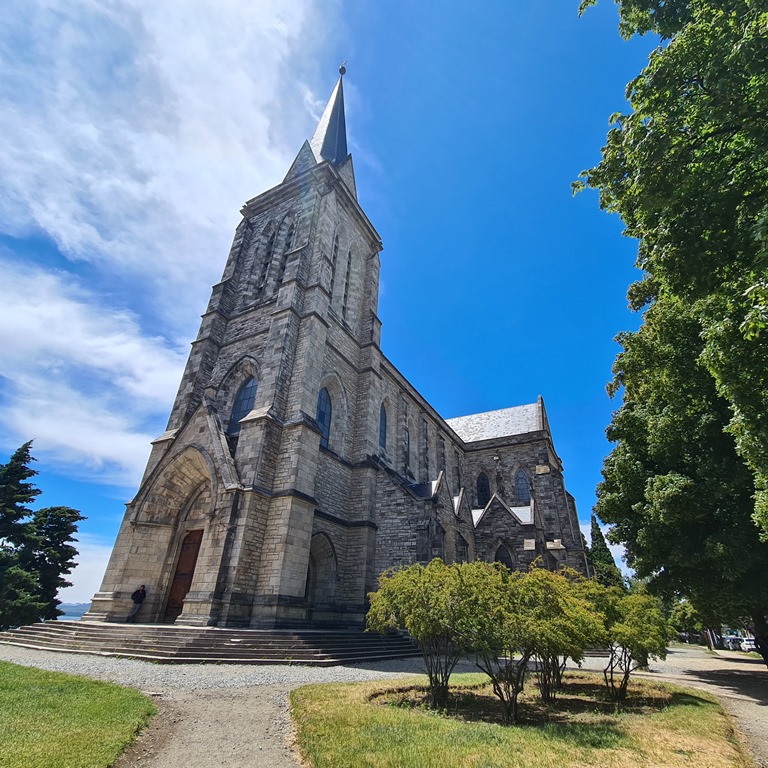 In Bariloche schauen wir und den Kunsthandwerk Markt, die schöne Kathedrale und Innenstadt gemütlich an. Es gibt ein Schokoladen Museum und einige eindrucksvolle Gebäude. Aber es hält uns nicht viel.Wir fahren weiter zu einer kleinen Brauerei mit Garten – Tom Wesleys Brauerei. Da werden wir sehr freundlich begrüßt, es ist zwar viel los, es gibt offensichtlich Kinderveranstaltungen, die gut angenommen werden. Aber der Ort gefällt und auf anhieb super. Der “Saloon” ist an de Bar mit Reitsätteln als Sitzgelegenheit ausgestattet, das Essen ist super, sie haben lecka Bier. Und… der Chef mag den Mogl und lädt uns ein zum Bleiben – ich darf auch Gemüse aus seinem Gewächshaus ernten… Wie toll ist das denn?![]()