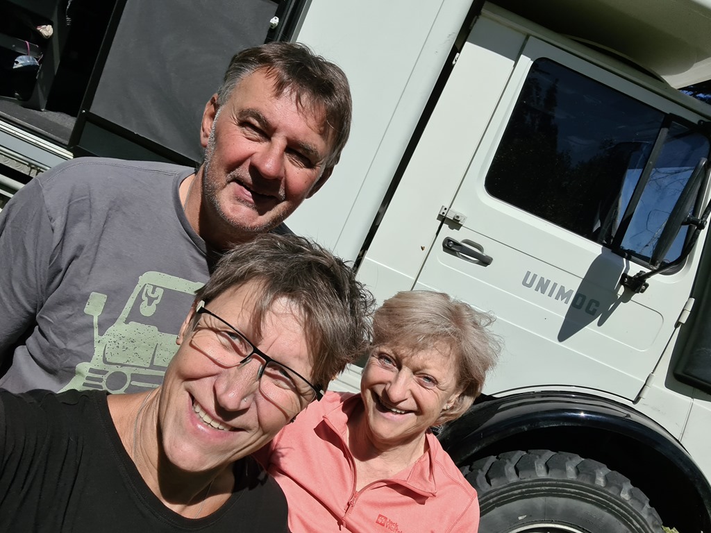 Amancy begrüßt und herzlich. Wir schätzen, tauschen uns über vieles aus – das war eine super schöne Überraschung – bisher kannten wir und noch gar nicht, aber verstehen uns auf anhieb prima. Wir dürfen auf ihrem Grundstück stehen und sie versucht für uns eine Werkstatt zu organisieren. Wir machen eine Wanderung um den See mit vielen Eindrücken, gehen lecka Essen. Am nächsten Morgen haben wir eine Werkstatt. Ersatzteile haben wir Notfalls dabei. Also Mogl hinfahren, da lassen und hoffen dass es bis Abend alles klappt. Zwischendrin gehen wir ein wenig wandern , schwätzen, essen und ernten Himbeeren im Hof ihres Sohnes. Er stellt unter anderem Säfte, Marmeladen her, hat Schafe, etc.. Ein Allrounder. Die Nachricht kam: Camioneta es listo! Tschakka – sie haben ihn fertig! Karim und sein Vater haben uns super geholfen.![]()