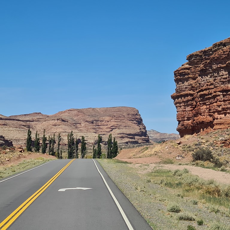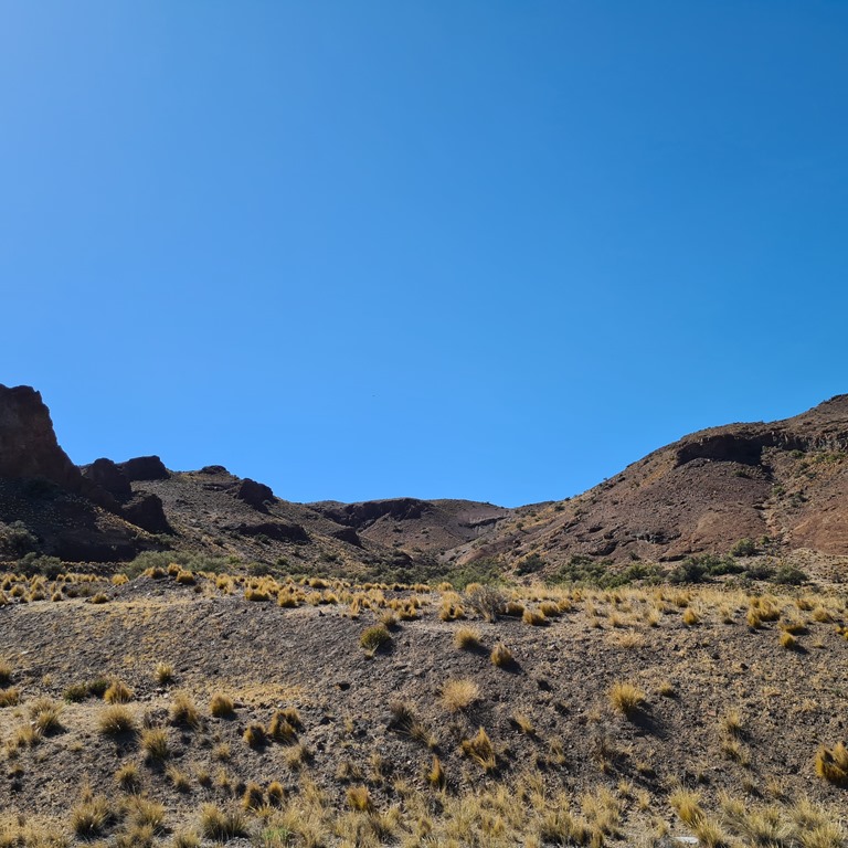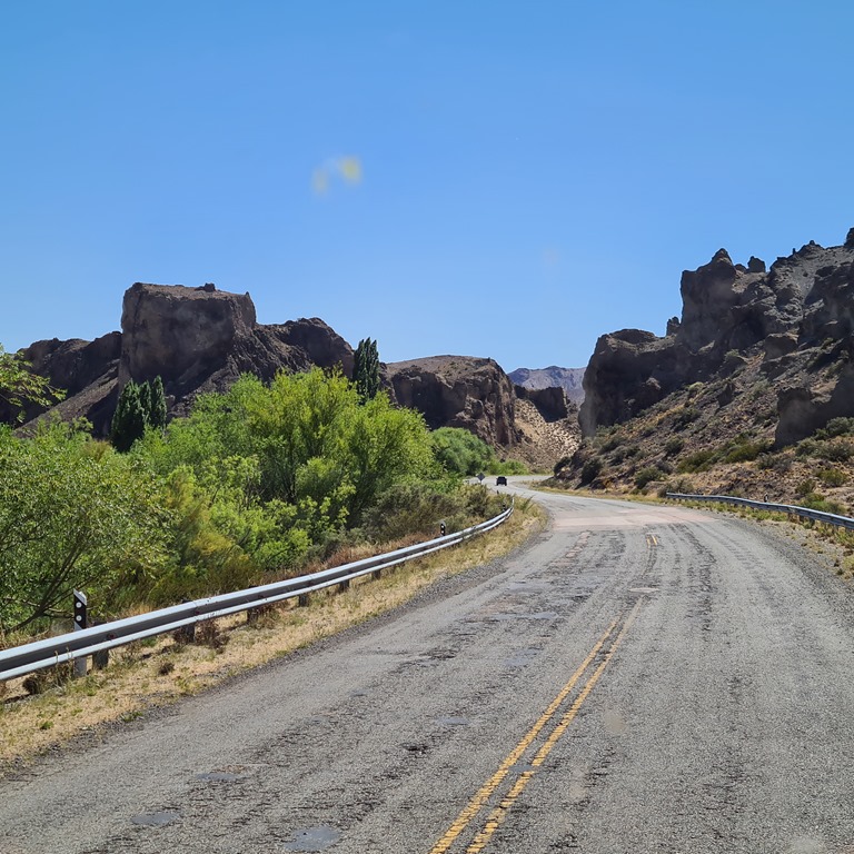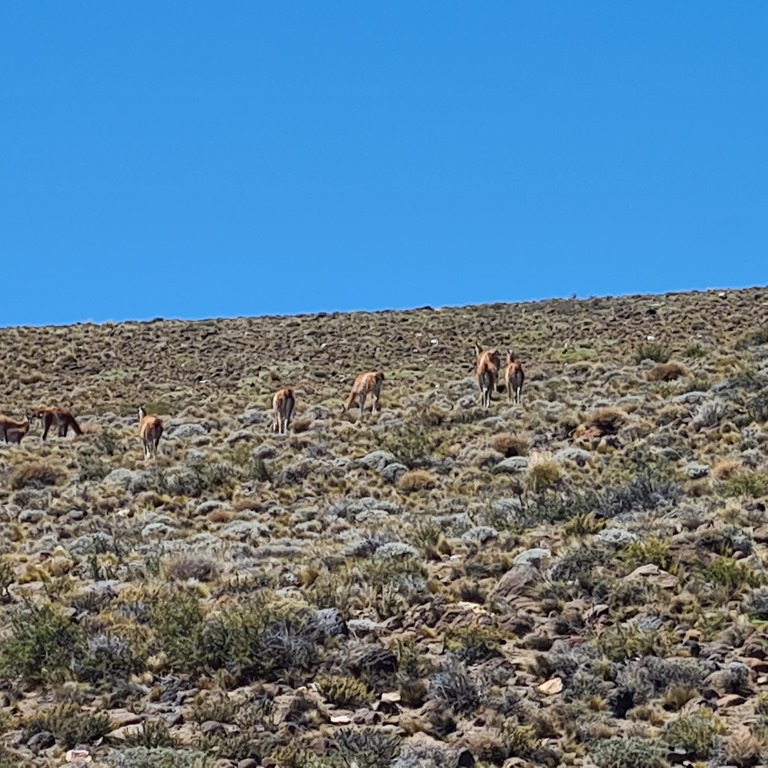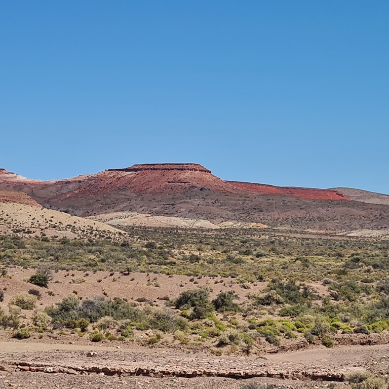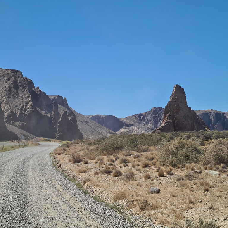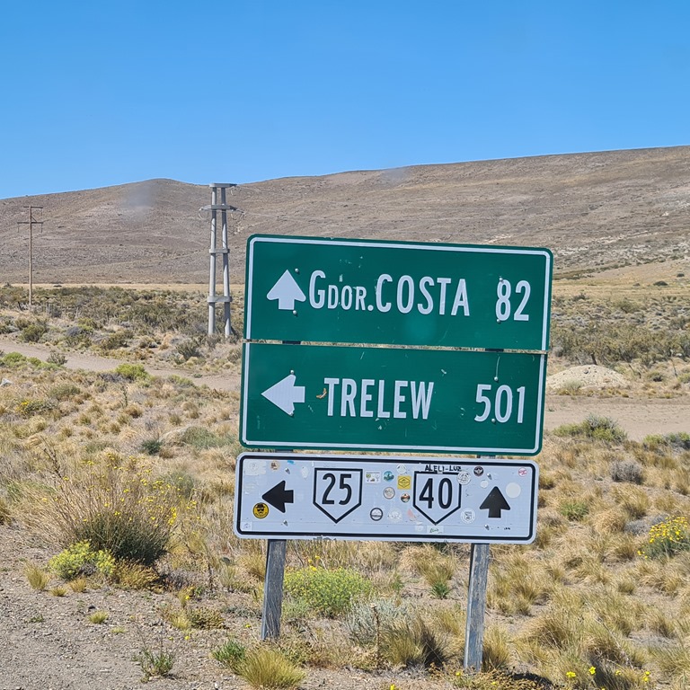 Wir verlassen die Ruta 40 – die Panamericana, es geht weiter auf der Ruta 25. Was nun auf unserer Stecke liegt ist die sogenannte “Meseta” eine Art Steppen – Wüste – sehr einsam und dies wohl 510km lang. Jeder rät uns ausreichend zu tanken, da es wohl die gekennzeichneten Tankstellen nicht alle so gibt. Getankt, alles eingeladen und zufrieden machen wir uns auf den Weg. Wir sind wohl am südlichsten Ort unserer Reise ungefähr und es geht von Westen komplett nach Osten in Richtung “Peninsula Valdez” und “Puerto Madryn”. Dabei geht es 2000m bergauf 800m wieder bergab. Die Meseta lässt sich mit der Macchia in Spanien und Südfrankreich vergleichen – ausser….den Guanacos, Gürteltieren und Pferden in den Hügeln – Schafe gibt es da auch. Die Guanacos´s sind wieder da!! Jippeh! Eigentlich kribbelt es wieder mit Wühlmaus zu fahren, die Landschaft ist was für uns…aber die über 35Grad Sonne und Wind halten mich davon ab. Wir verstärken unsere manuelle Klimaanlage im Mogl mit USB-Lüftern. Dann kommt die tolle Überraschung. Nach dem “Paso del Indio” bis nach “Los Altares” und weiter bis nach “Las Plumas” kommt eine gigantische Landschaft entlang des Rio Chubut. Phantastische Felsformationen lassen uns nur staunen. Hier war ein gigantischer Fluss vor langer, langer Zeit und hat diese Schlucht ausgearbeitet.![]()