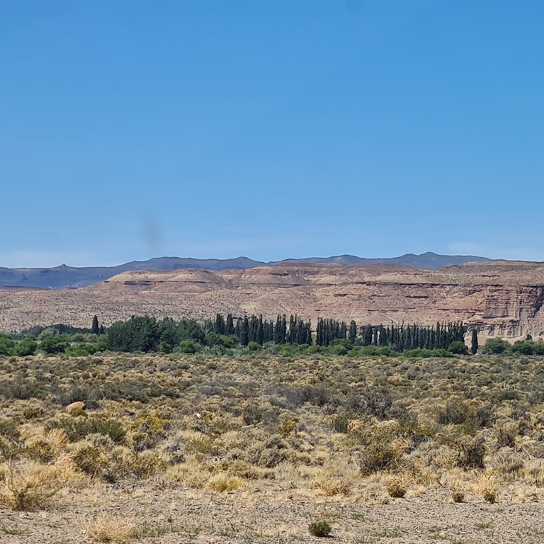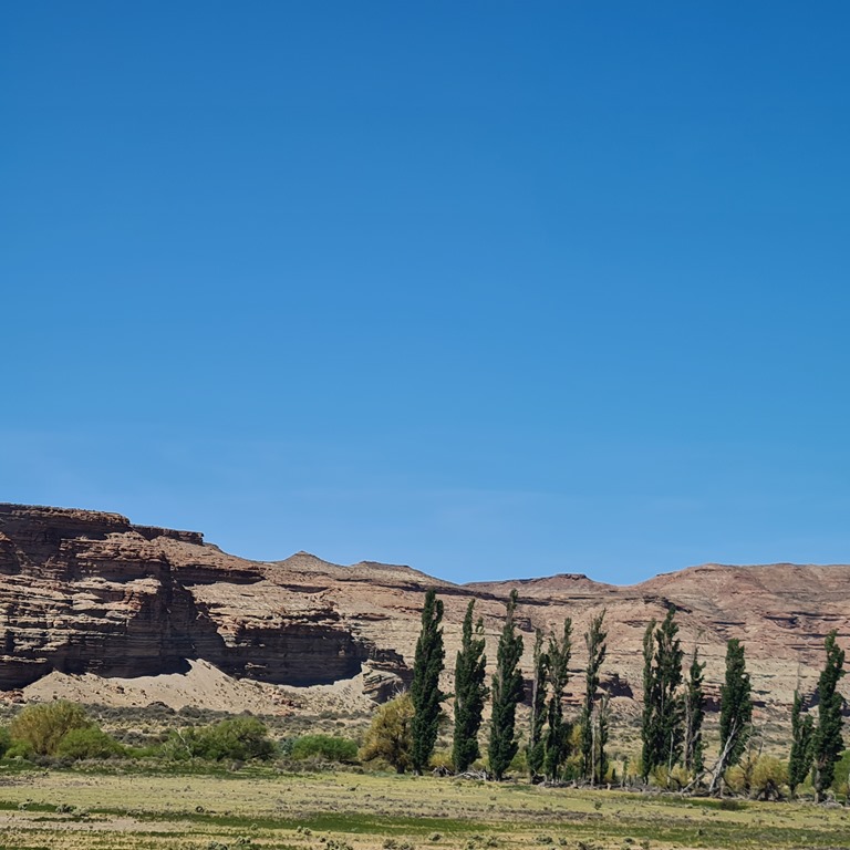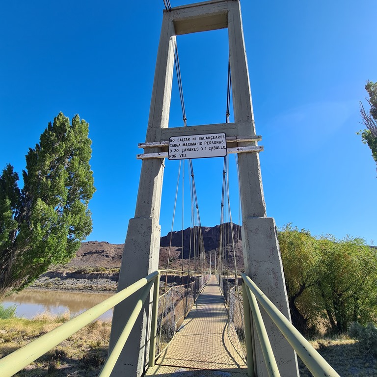 Es gibt auch wieder grün zu sehen! In “Los Altares” laufen wir noch ein bischen rum und entdecken die Brücke über den Rio Chubut – etwas wackelig mit einer Katrin – es dürfen aber bis zu 10 Menschen oder 20 Schafe oder ein Pferd drüber gehen. Bei letzteren möchte ich nicht auf der Brücke sein…. In “Las Plumas” haben wir so 38Grad und machen Pause für den Tag im Schatten.![]()