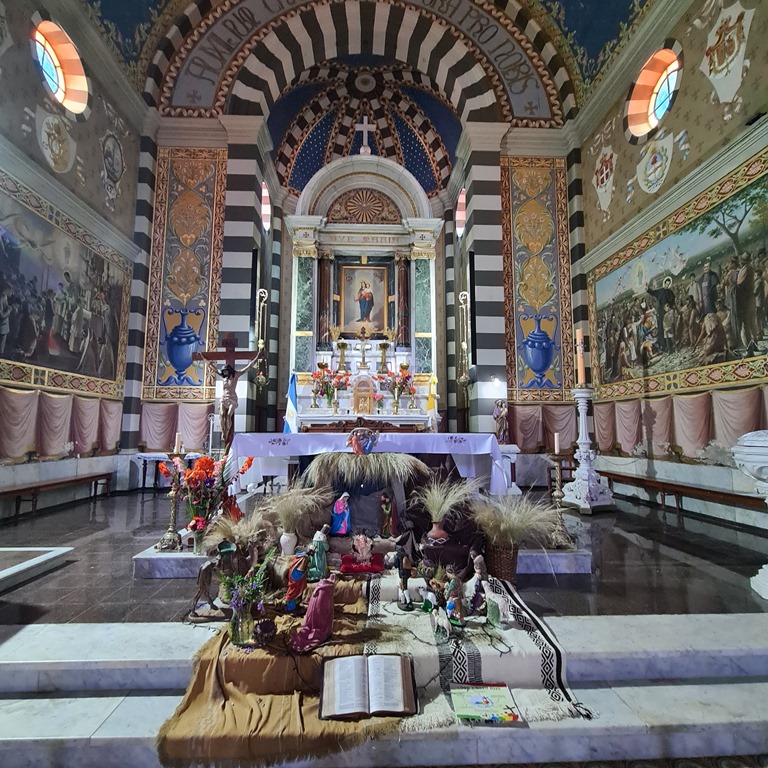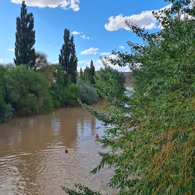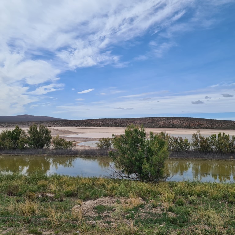 Winke, winke Meer… wir sind dann mal weg. Es direkt in Richtung Bahia Blanca weiter. Mit dem Zwischenstopp in Piedro Luro und Fortin Mercedes, einem Museum eines alten Forts und einer Wallfahrtskirche. Dies liegt bereits am Rio Colorado, wir verlassen die Region Rio Negro und damit auch Patagonien. Die Landschaft verändert sich auch weiter es kommen bestellte Felder mit Zwiebeln, Getreide und Gras und Sonnenblumen. Im Fortin Mercedes und der Kirche, die wirklich beeindruckend ist und sogar am Fluss Colarado wir nur in kleiner Gesellschaft. Der Rio Colorado hat eher eine braune Farbe aufgrund der Sedimente, man kann nicht sehen, wo mach hintritt – deswegen lasse ich einen größeren Besuch aus. Andere stört dies nicht. Wir werden beim schauen angesprochen woher wir kommen, was wir so machen und vorhaben und der nette junge Mann empfiehlt uns unbedingt auch die Laguna Salada anzuschauen. Das machen wir auch. Wirklich ein schöner salziger See mit toll angelegten Freizeitgelände. Wir merken und dies vor, falls unser nächstes Ziel – nämlich die Thermen nichts für sind. Aber doch.Schön angelegte, Salinen Thermen mit 3 Innen- und 5 Außenbecken und zusätzlich noch in Fangobecken. Das war schön und chillig! Die Sonne ist wieder da, es ist wieder um die 27Grad ein wunderbarer Tag.
