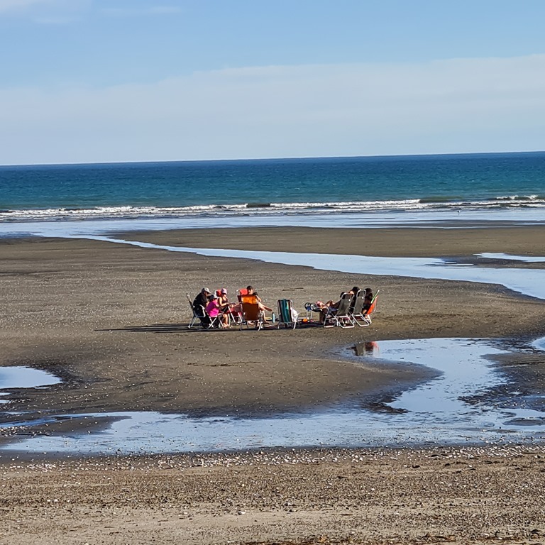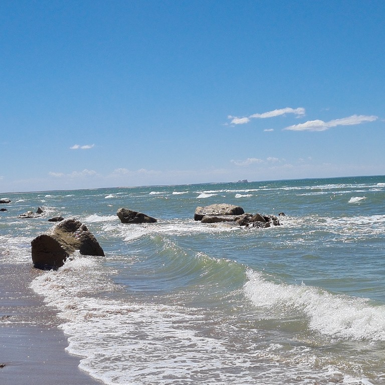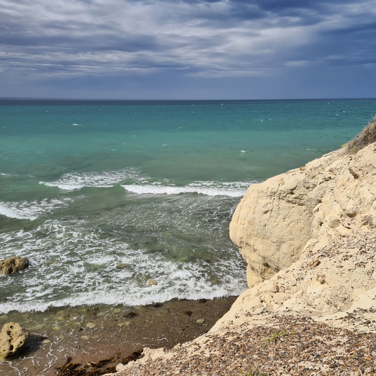Wir wollen wieder weiter und machen uns auf nach Las Grutas weiter nördlich der Atlantikküste. Eine schnurgerade RN 3 führt uns gute 200km da hin. Ich wäre fast eingeschlafen – es gab nahezu keine Abwechslung, außer der Idee in Argentinien Zaun-Hersteller zu werden. Ich glaube das ganze Land ist eingezaunt!! Was für ein riiieeesiger Markt! Ab und zu gab es auch ein Tor dazwischen. Wind weht, Meseta – die haben wir ja ach schon gesehen. Da kam Las Grutas. Kulturschock! Horden von Personen, die mit geringer Bekleidung, Standtasche und den ortsüblichen Klappstühlen und Kühlbox offensichtlich in Richtung Meer zogen. Im Ort hätte man denken können, dass wir in einem der krassen italienischen Urlaubsorten gelandet sind. Andenkenläden und all der Klimbim.