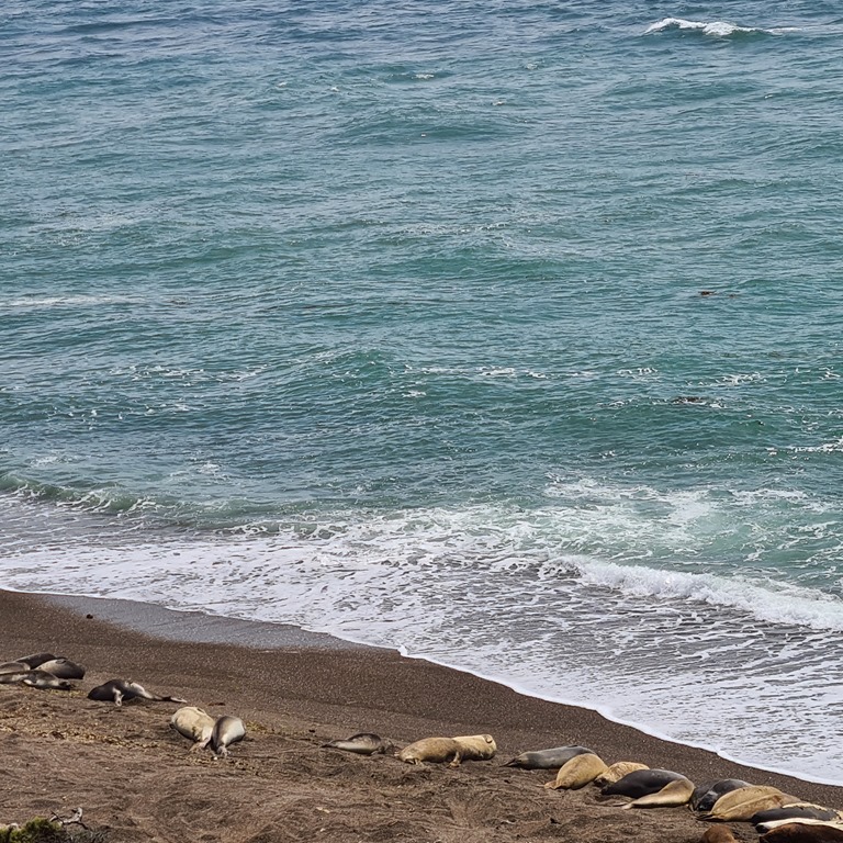 In aller Ruhe und gelassen, sehen wir viele der niedlichen Guancos, endlich auch mal ein Borsten-Gürteltier, Seehunde, Seelöwen, Magellan Pinguine, einen Fuchs, aber der erhoffte Blick auf einen Orka bleibt aus. Das war aber schon fast klar, weil die Orkas Ende November – Mitte Dezember von hier aus weiter in den Süden ziehen. Naja, aber hätte ja sein können, dass sich der eine oder andere verspätet. Als Abschluss noch ein Fischrestaurant aufsuchen – ein absolut gelungener Tag.