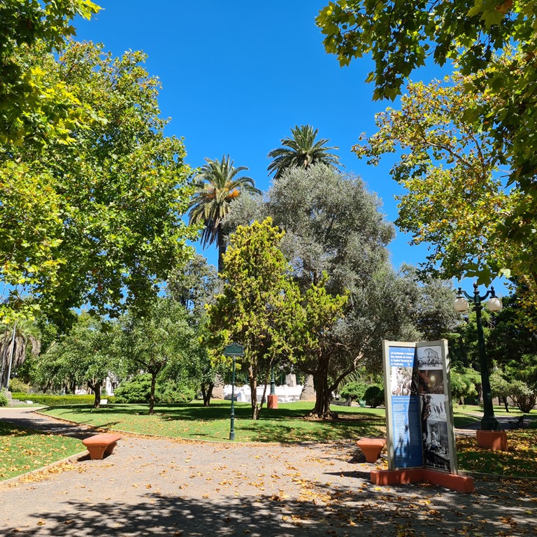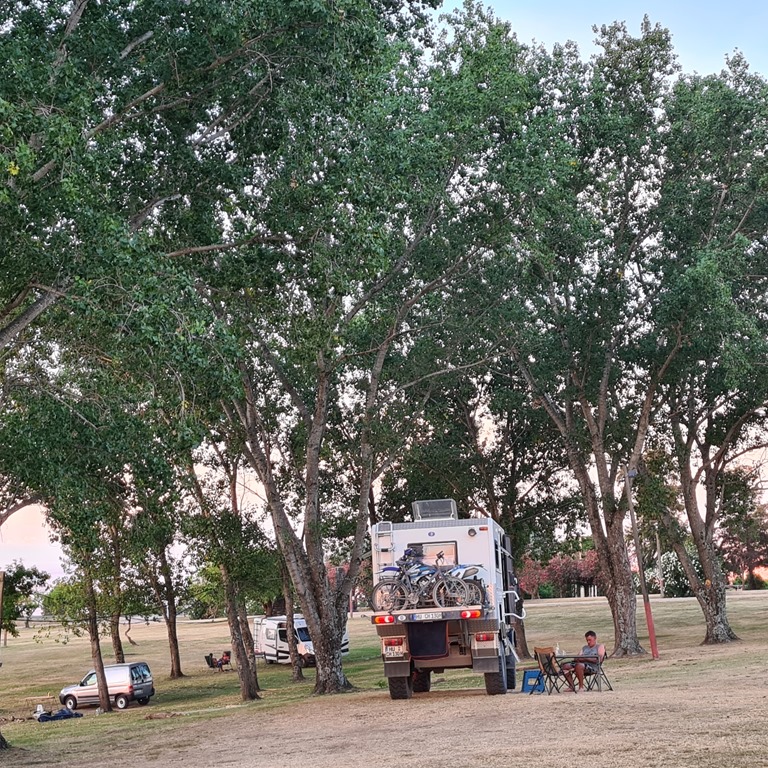 Die nächste schöne Überraschung ist der Ort Carlos Casares. Die Suche nach einem Platz für uns in Richtung Sa Antonio de Areco mit viel Schatten und Balneario bringt uns dahin. Den Weg zu dem Park mit den Asados und dem Balneario zu finden war gar nicht so einfach. Aber kaum, da wurden wir von einem Netten Herren begrüßt. Hinstellen, klar geht – sucht euch aus aus, ist ja viel Platz. Nee, kostet nichts und da vorne ist das Schwimmbad, gib mir mal deinen Namen, dann sage ich Bescheid, dass ihr da seid. Riesige Bäume spenden Schatten und das Schwimmbad ist herrlich. Für 1000Peso (1EUR). Ich werde wieder angesprochen, woher wir denn komme. Die Gesichter kennen wir nicht. Dann erfahre ich auch warum der Zugang so schwierig ist –im letzten Jahr waren wohl Leute da, die die Infrastruktur, Grills, Toiletten, Duschen und auch die anderen Einrichtungen zerstört haben. So ist es nur durch den Ort zurreichen. Mogl ist wieder eine Attraktion. Am Abend erkunden wir noch den Ort, wirklich nett mit viel Leben.