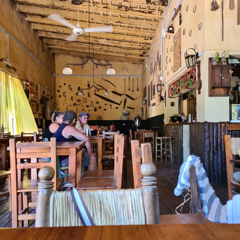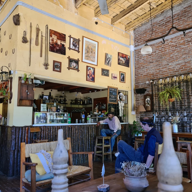 Trotzdem ziehen wir am nächsten Morgen weiter in Richtung Carmen de Areco. Hier nun genau das Gegenteil. Mittags erreichen wir den Camping Municipal. Die Dame am Eingang nennt uns die erstaunliche Summe von 48.000Peso. Die Badezimmer sind sogar noch unter dem argentinischen Durchschnitt und der ist gewöhnungsbedürftig…. Das Schwimmbad ist mit einer riesigen Pfadfindergruppe zu teilen. Wir fahren wieder und zwar die 40km weiter nach San Antonio de Areco. Die Strecke geht nun auch für Mogl über die Piste, staubig und heiss. Wir kommen aber aber dann an und finden einen Platz. Erstmal Schatten! Wir wollen noch bleiben. Am Abend und am nächsten Tag wird die Stadt erkundet. Sie gilt als die Stadt, die, die Gaucho-Kultur pflegt, gemeinsam mit ein paar Estancias in der Umgebung. Es gibt einige schöne Häuser aus der Gründerzeit, Park hat große alte Bäume und es gibt einige “Pulperias” – ehemalige Geschmischtwarenläden mit Wirtschaft in denen die Landbevölkerung sich getroffen hat und Informationen ausgetauscht hat, ein öffentliches Balneario und den größten Ombù Baum, den ich bisher gesehen habe– der Fluss mit Staudamm und ein Gaucho Museum. In regelmäßigen Abständen werden die Traditionen (Gaucho Reitstile, Aufgaben, etc.) aufgeführt. Nett, chillig ist es. Es soll touristisch sein – aber nicht wirklich in dem Maße in dem wir es kennen!! Die Touristen sind auch meist aus Argentinien…
