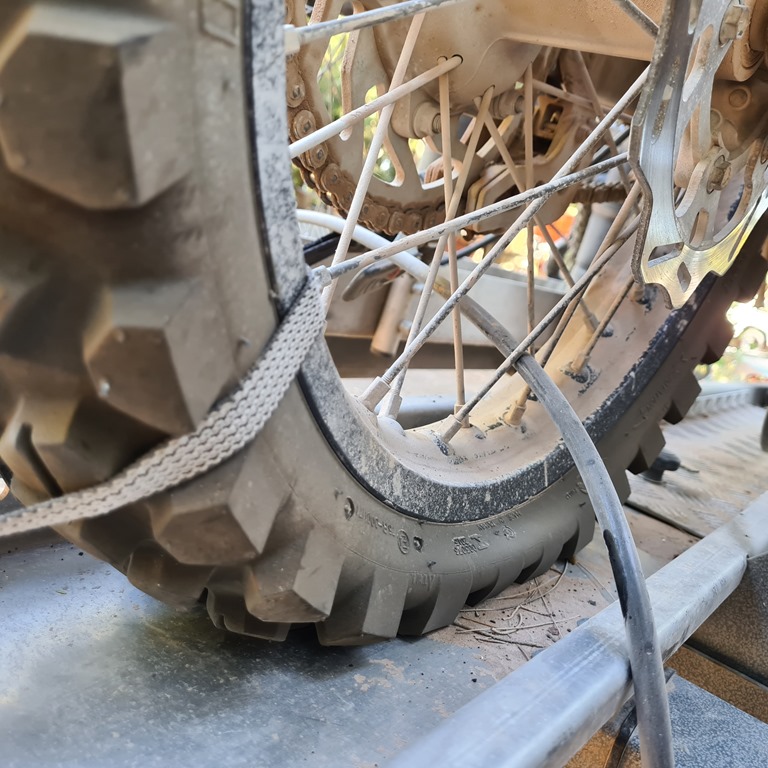 Es gibt in der Nähe von Tinidad wohl noch ein geologischen Ort am Fluss Den werden wir uns dann als nächstes Anschauen. Doch! Was ist das denn? Die nächsten Tage wollte ich eigentlich mit der Wühlmaus fahren – aber der Hinterradreifen ist platt! Ohjemineh – nach dem Aufpumpen hielt er keine fünf Minuten die Luft. Fahren so, ist erstmal nicht. Wir werden die nächsten Tage mal inspizieren was da los ist.